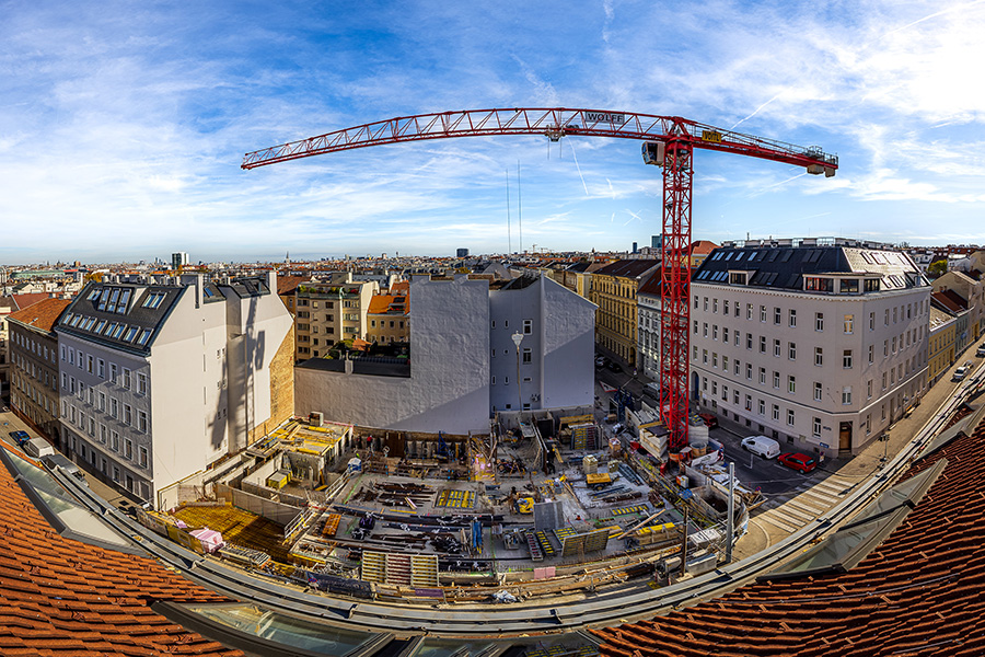 An der Ecke Pohlgasse / Aichholzgasse entsteht ein Neubau mit 67 hochwertigen Eigentumswohnungen. Das Gebäude umfasst 2 Untergeschosse und 6 Obergeschosse.