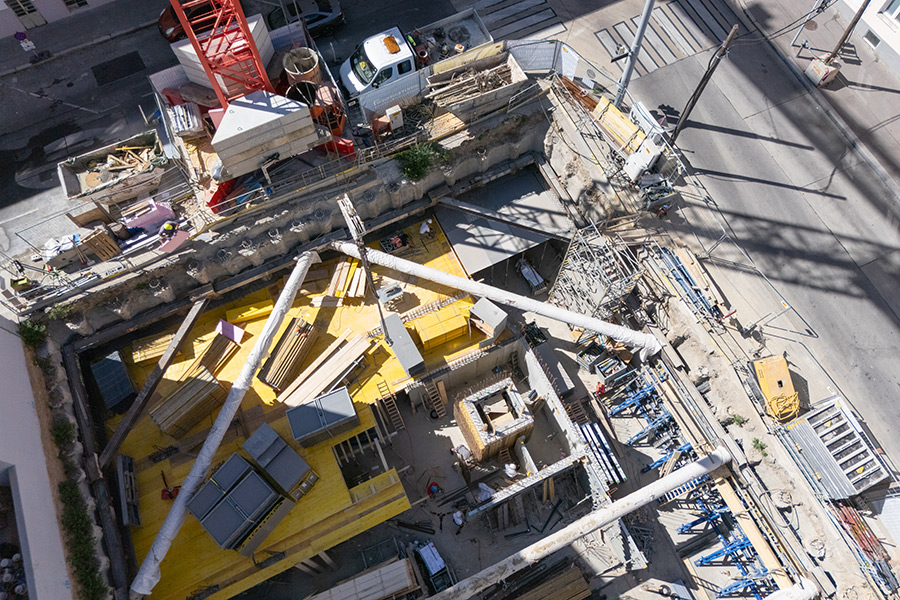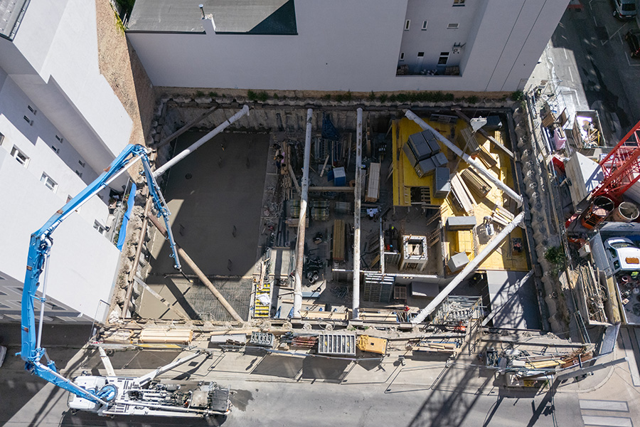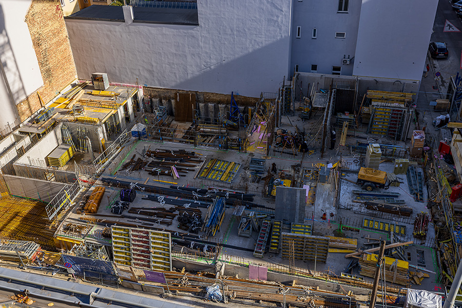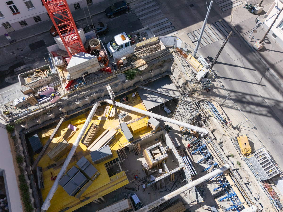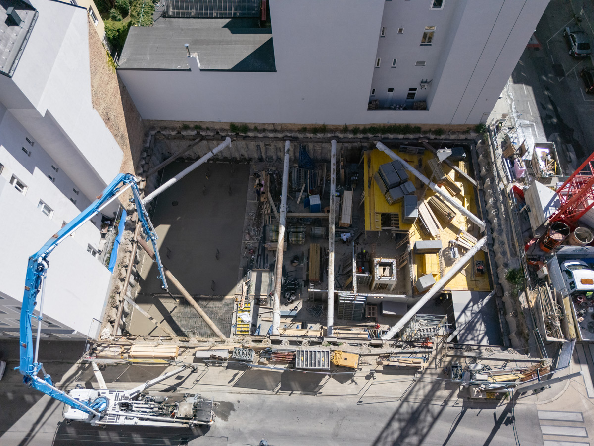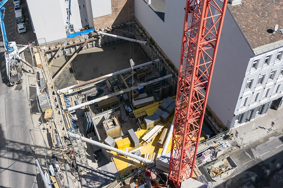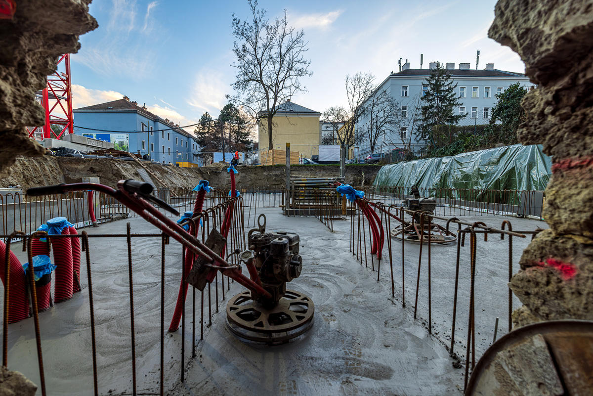 Der Neubau wird 2-geschossig unterkellert, wobei im 2. Untergeschoß eine Tiefgarage mit 30 Stellplätzen errichtet wird, die über einen Autolift erschlossen wird.
