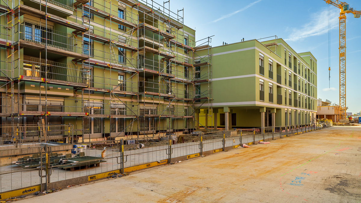 Auf dem Gelände entstehen 100 Mietwohnungen, ein Kindergarten und eine Tiefgarage mit 69 Stellplätzen. Sämtliche Wohnungen im Erdgeschoß sind mit Terrassen und die restlichen Wohnungen in den Obergeschoßen mit Loggien und Balkonen ausgestattet.