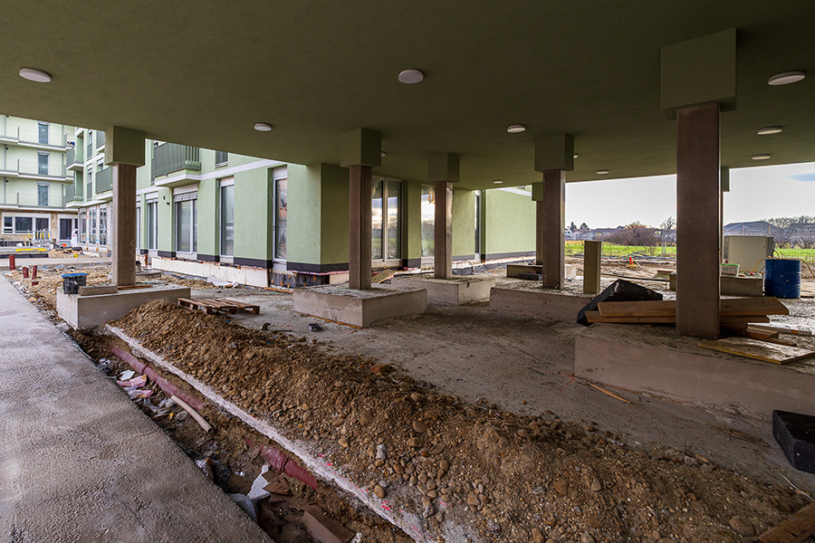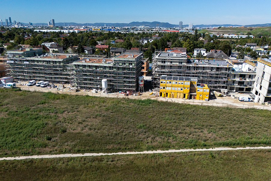 Die Firma Voitl & Co. errichtet im Auftrag der FAMILIE Gemeinnützige Wohn- und Siedlungsgenossenschaft reg.Gen.m.b.H. eine schlüsselfertige Wohnhausanlage an der Schanze E1, 1210 Wien.