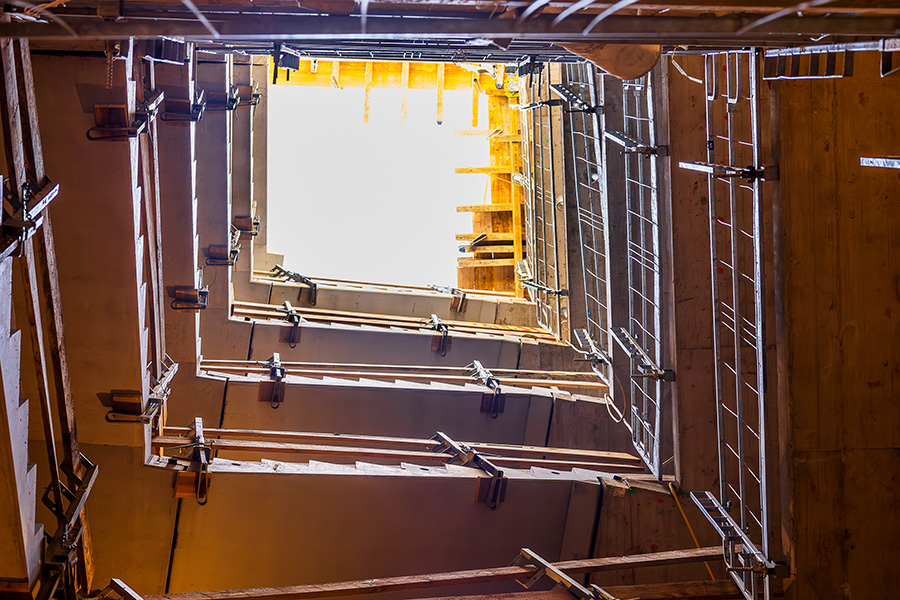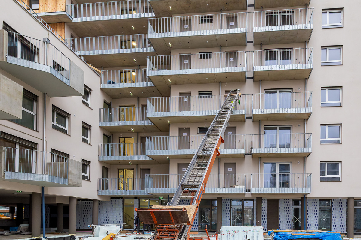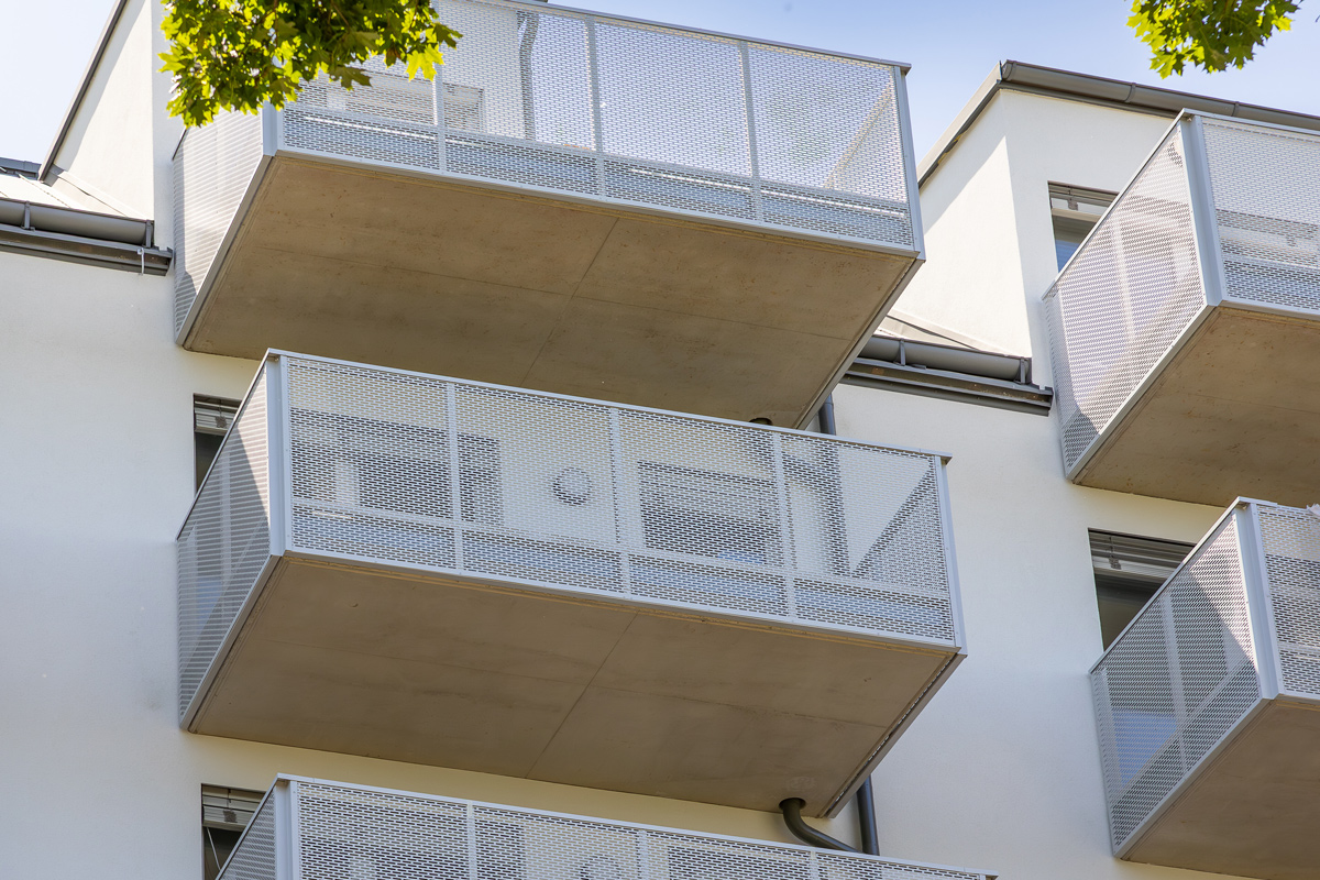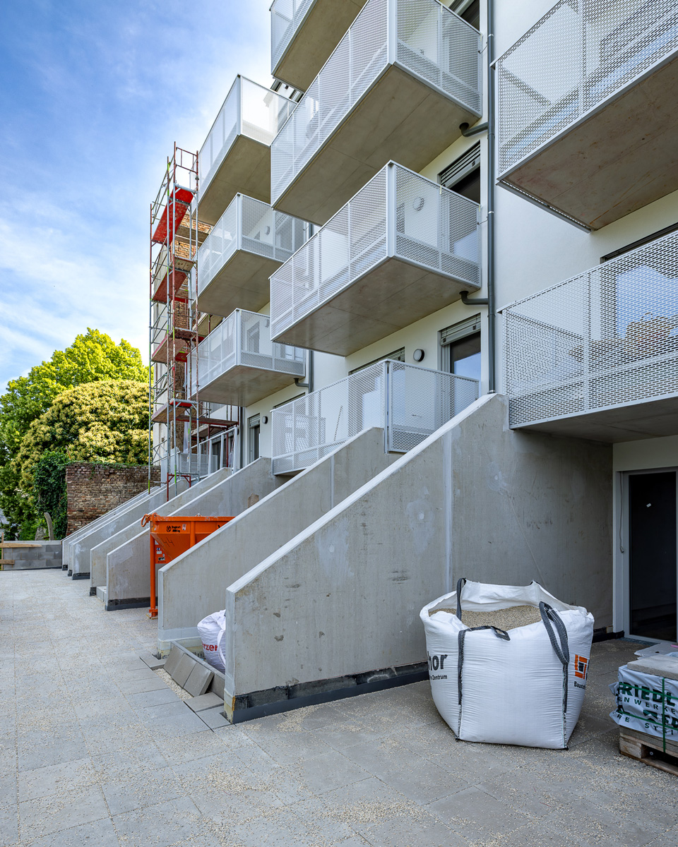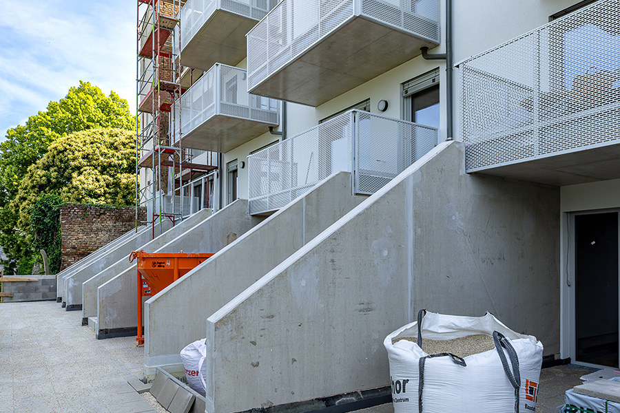Im Innenhof werden zwei Balkontürme für die Wohnungen ohne Balkon errichtet.