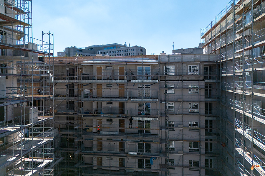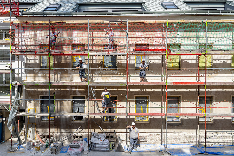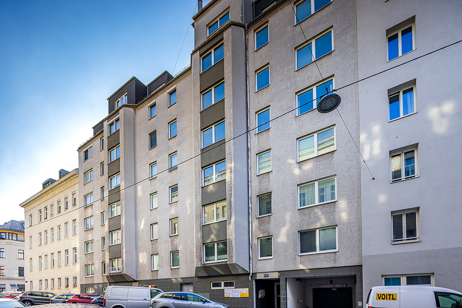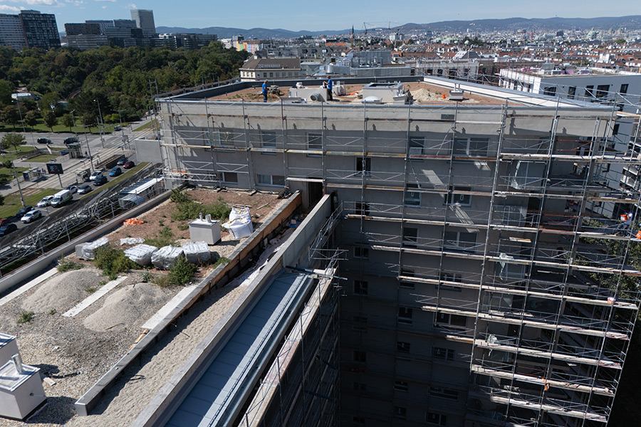 Für die EGW wird eine umfassende thermische Sanierung des Wohngebäudes Schallergasse 8-10 umgesetzt. Das Gebäude gliedert sich in eine Tiefgarage, ein Erdgeschoss sowie sieben Obergeschosse und umfasst insgesamt 29 Wohnungen, die während der gesamten Bauphase durchgehend bewohnt bleiben.