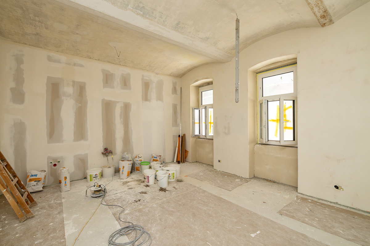 Die Sanierung umfasst das Ersetzen der vorhandenen Fenster und Fenstertüren, das Herstellen von Innenjalousien und die Erneuerung der Blitzschutzanlage.