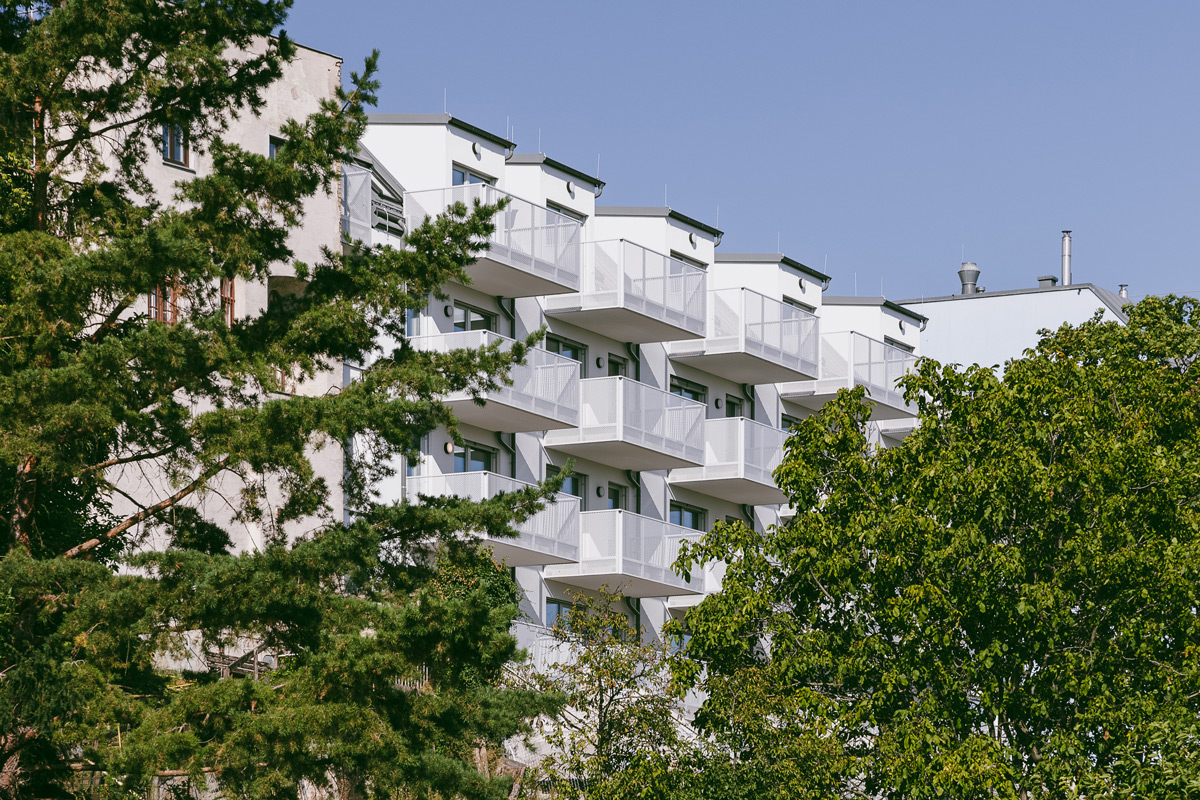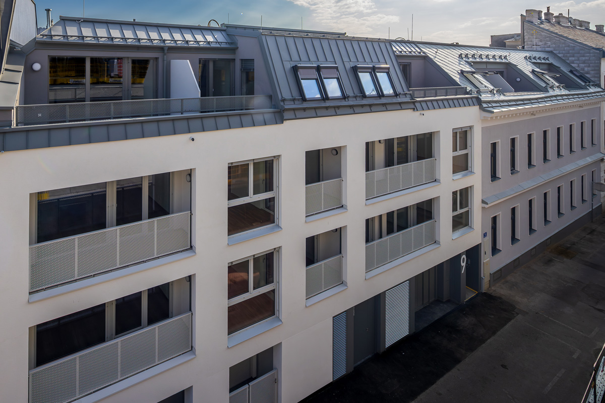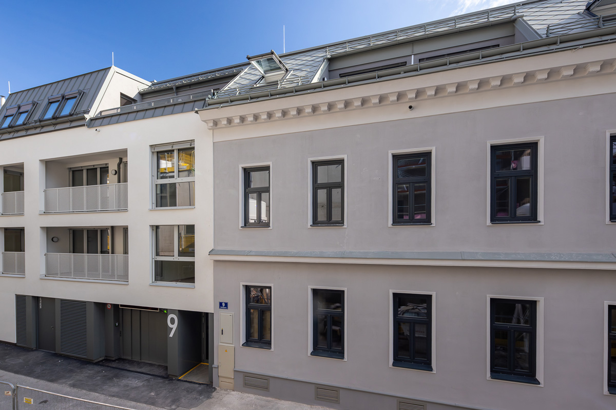 Die vier Bauten stammen aus dem Jahr 1904. Der Großteil des Altbestandes bleibt erhalten und wird durch die Sanierung und eine Aufstockung in den Neubau integriert und behutsam erweitert. So entstehen bis zu sieben oberirdische Geschosse und ein Untergeschoß. Idyllische Dachgärten runden dieses innovative Projekt ab.