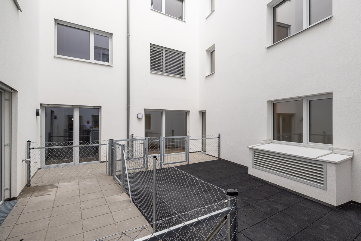 Ebenso steht den Mietern eine Gemeinschaftsterrasse im 3.Obergeschoss, ein Gemeinschaftsraum sowie 2 Fahrradräume im UG und ein Kiwa + Fahrradraum im EG zur Verfügung. Ein Kinderspielplatz im Innenhof wird ebenfalls errichtet.