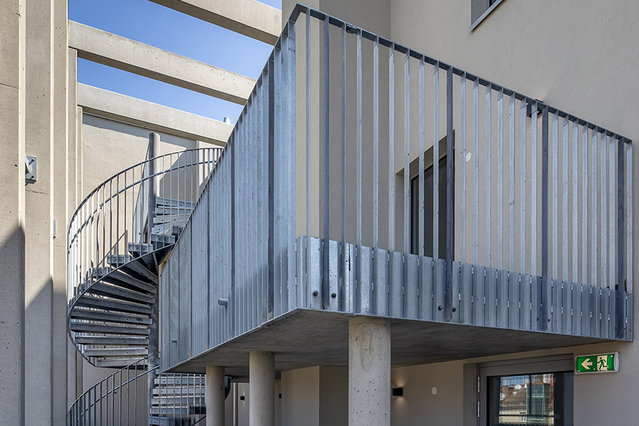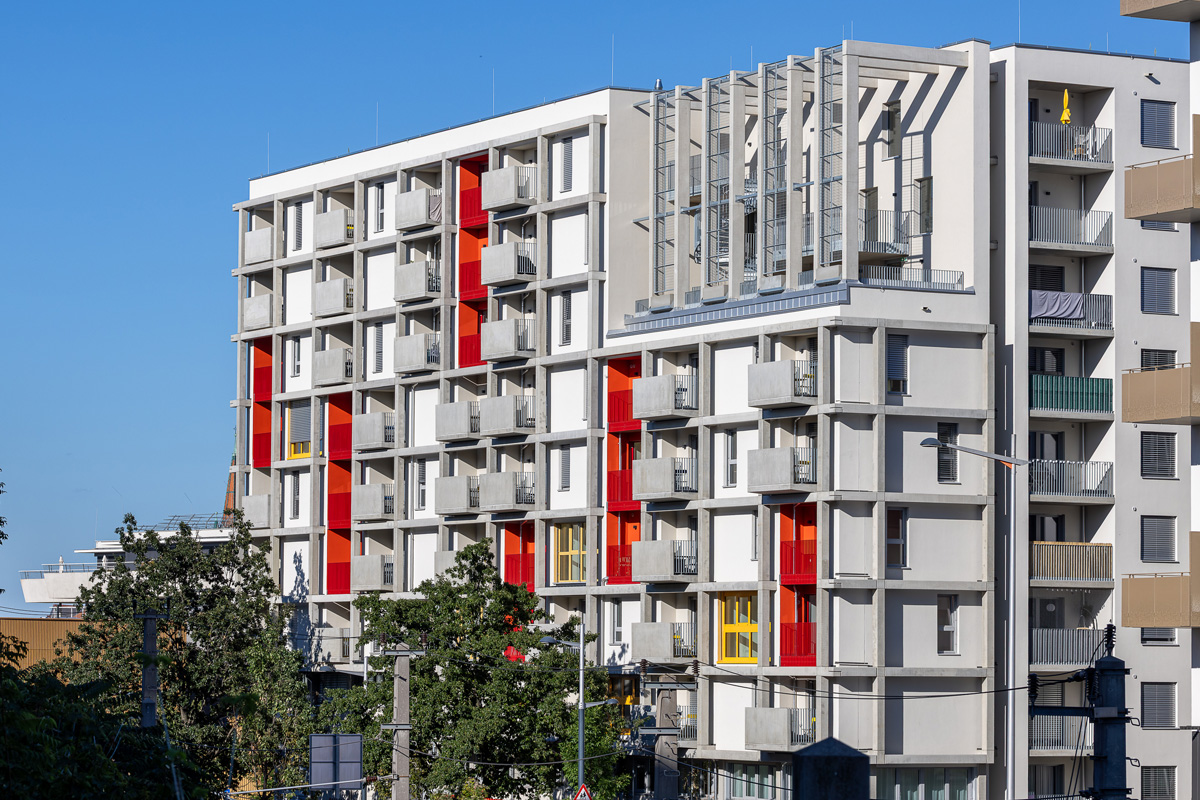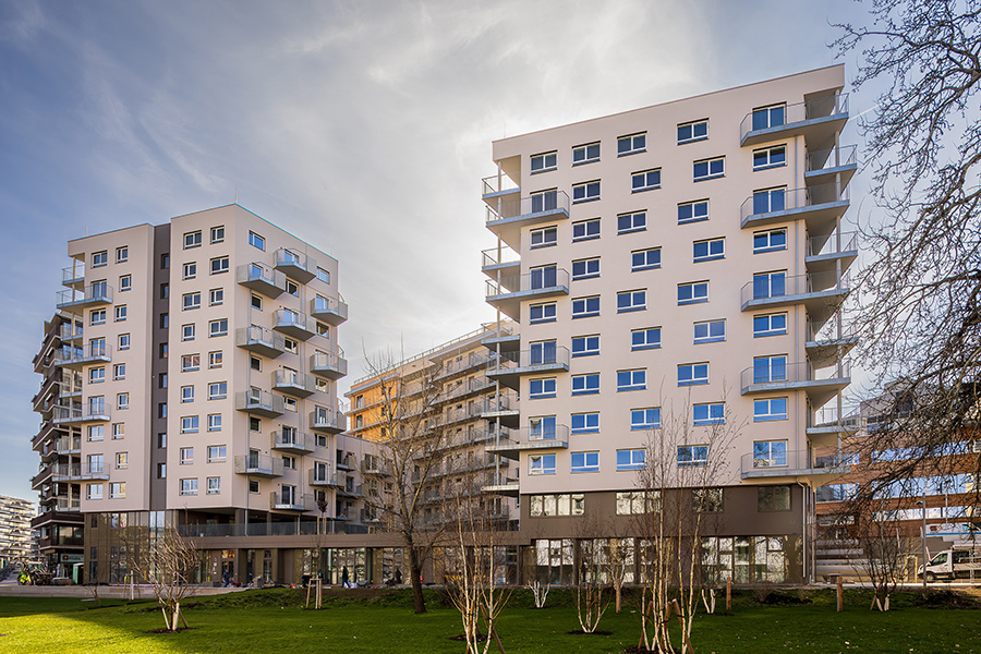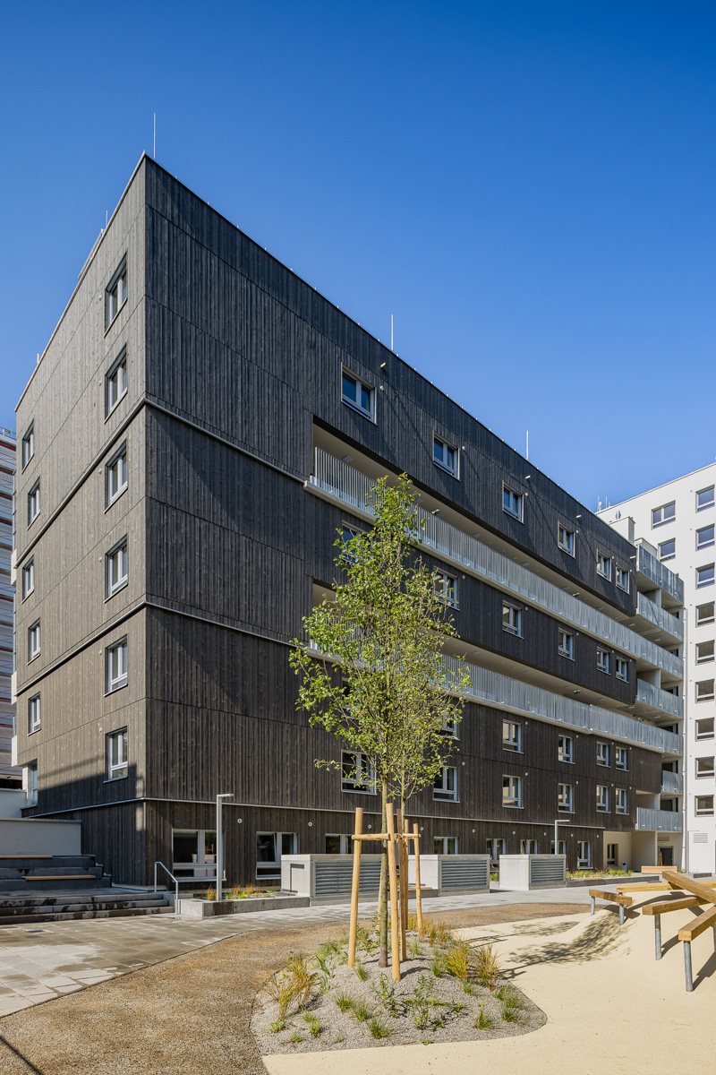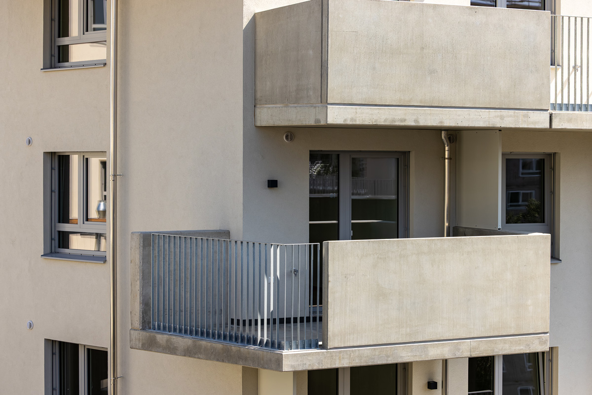 Die Wohnhausanlage beherbergt 1 bis 4 Zimmer Wohnungen mit großzügigen privaten Freibereichen in Form von Loggien oder Balkonen. Um der Anforderung nachhaltig Bauen und Wohnen gerecht zu werden, kommen in diesem Projekt mehrere Methoden zum Einsatz. Zum einen sorgen die begrünten Fassaden für die Verbesserung des Stadtklimas, zum anderen helfen Photovoltaikanlagen am Dach gemeinsam mit der Abwärme aus dem Abwasser warmes Wasser zu erzeugen. Die Ausstattung der Wohnhausanlage mit der Bauteilaktivierung zum Heizen im Sommer und Temperieren im Winter runden das Angebot an nachhaltigem Bauen für dieses Projekt ab.