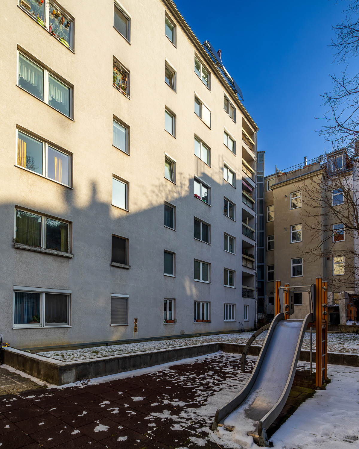 Der komplette Innenhof wird mit einem Spielplatz neu gestaltet um die Wohn- und Lebensqualität für alle Bewohnerinnen und Bewohner nochmals zu erhöhen.