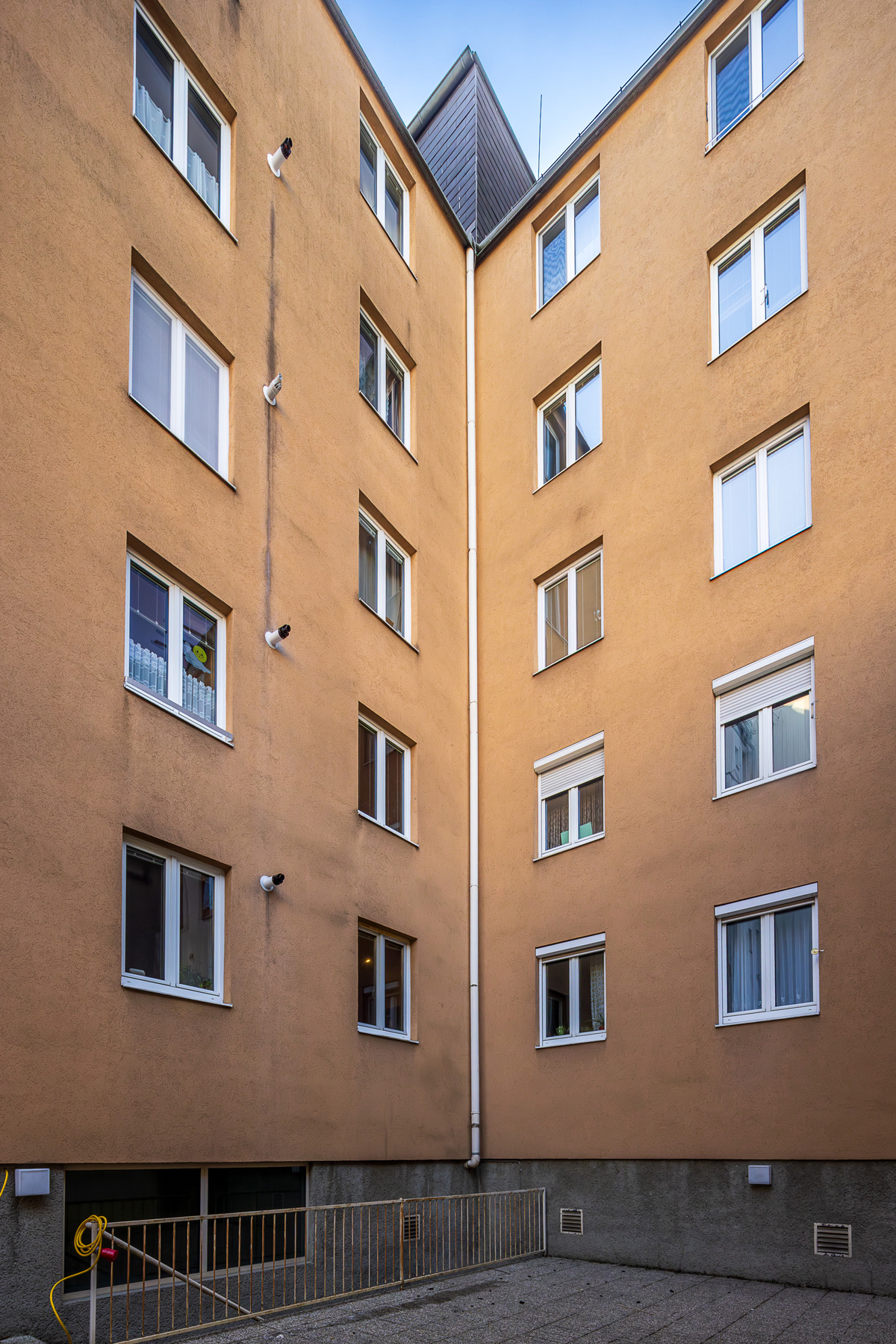 Im Erdgeschoss befinden sich die über Hof- und Straßenseite erschlossenen Geschäftslokale. Jene Wohnungen der oberen Geschoße sind mit Balkonen, Loggien und Terrassen ausgestattet.