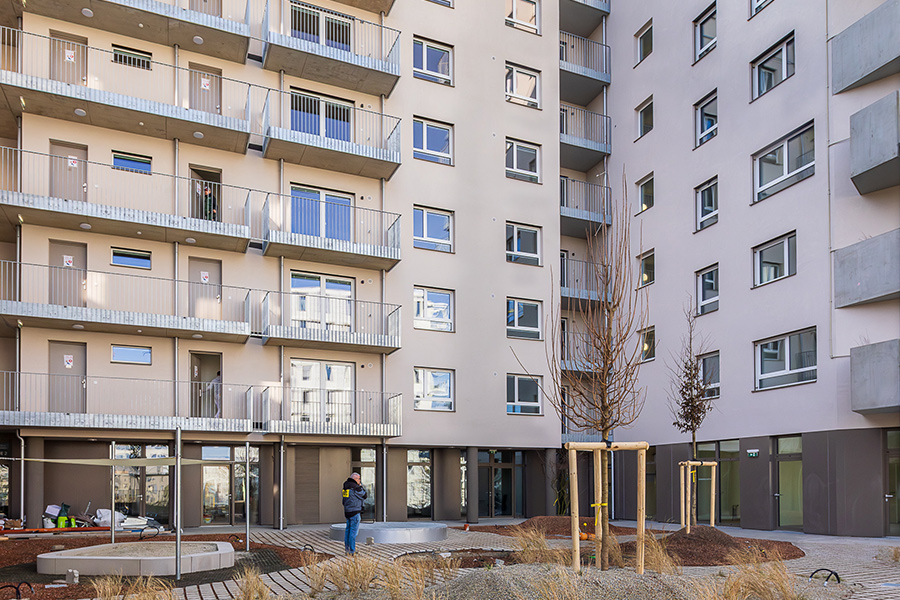Auf dem Gelände des ehemaligen Aspangbahnhof entstehen 104 Mietwohnungen, 13 Geschäftslokale und eine Tiefgarage mit 40 Stellplätzen.