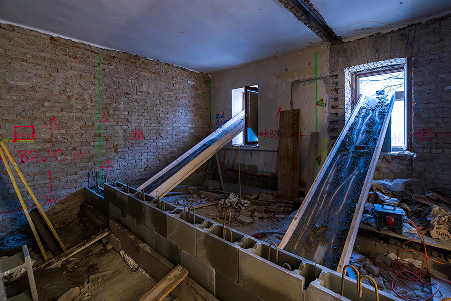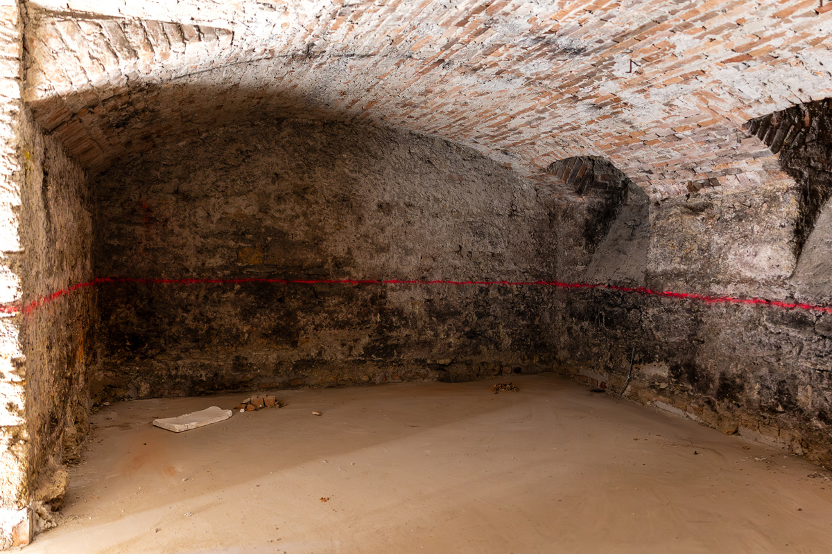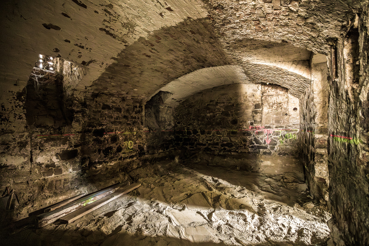 Im Zuge der Sanierung werden die Wurfsteinmauerwerke in den alten Kellern erhalten. Die Zubauten erfolgen in Holzhybridbauweise.