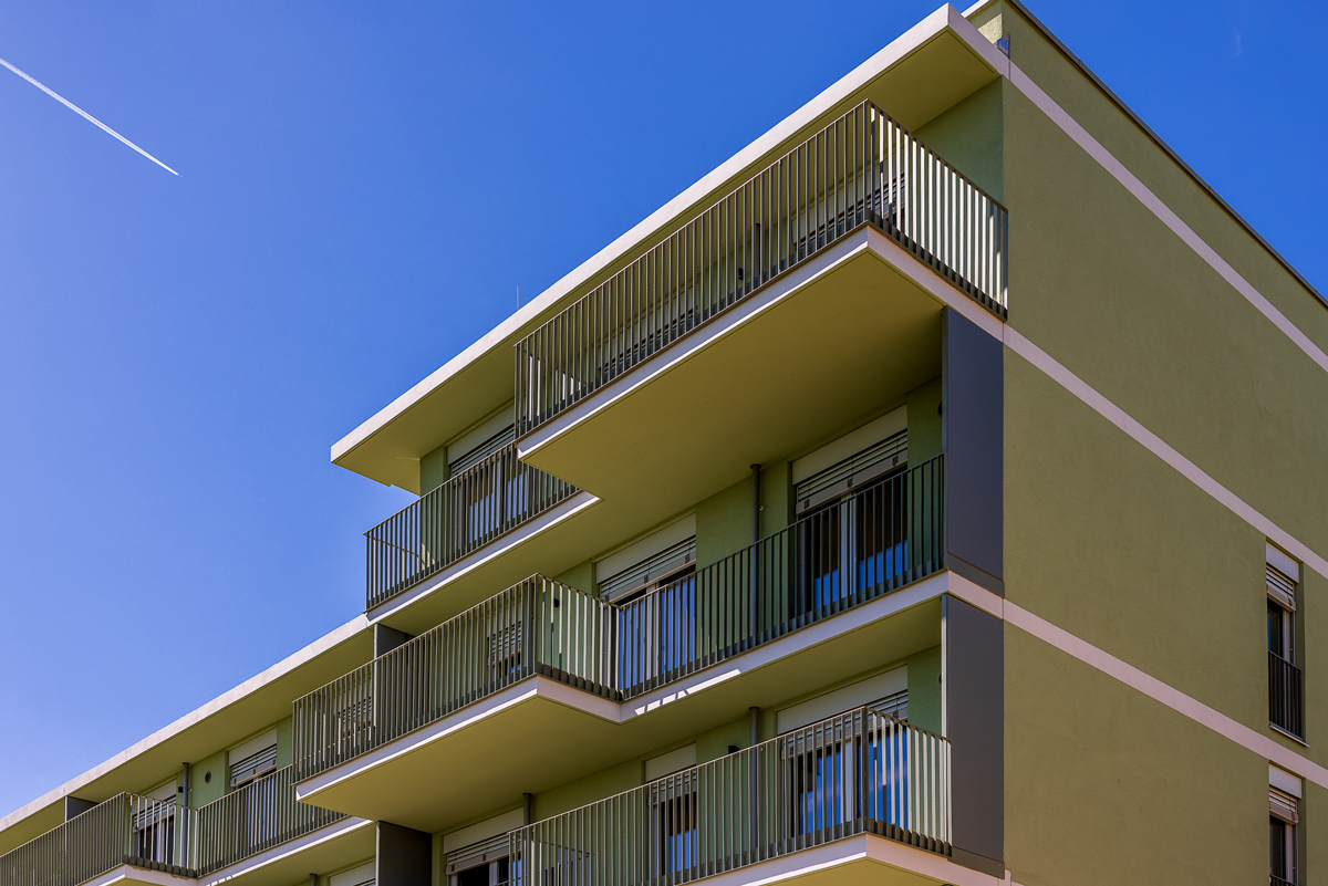 Auf dem Gelände entstehen 70 Mietwohnungen, 2 Geschäftslokale und eine Tiefgarage mit 46 Stellplätzen. Sämtliche Wohnungen sind mit Balkonen, Loggien oder Terrassen ausgestattet.