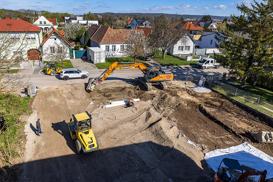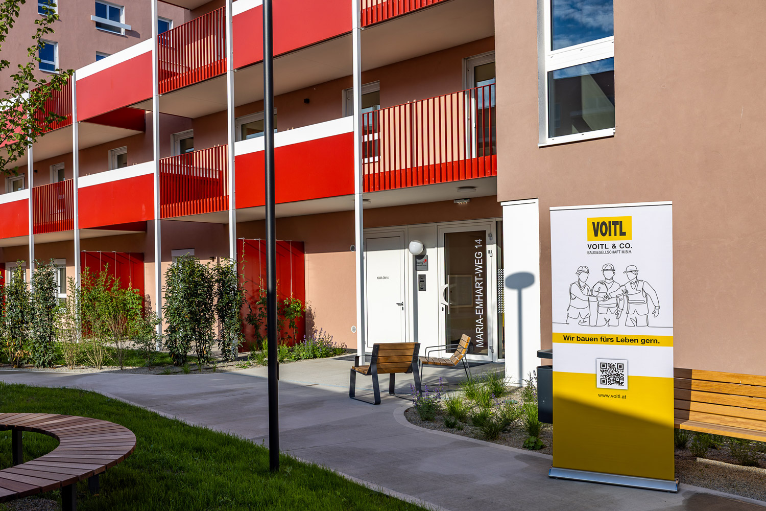 Die Firma Voitl & Co. errichtet im Auftrag der FAMILIE Gemeinnützige Wohn- und Siedlungsgenossenschaft reg.Gen.m.b.H. eine schlüsselfertige Wohnhausanlage an der Schanze E1, 1210 Wien.