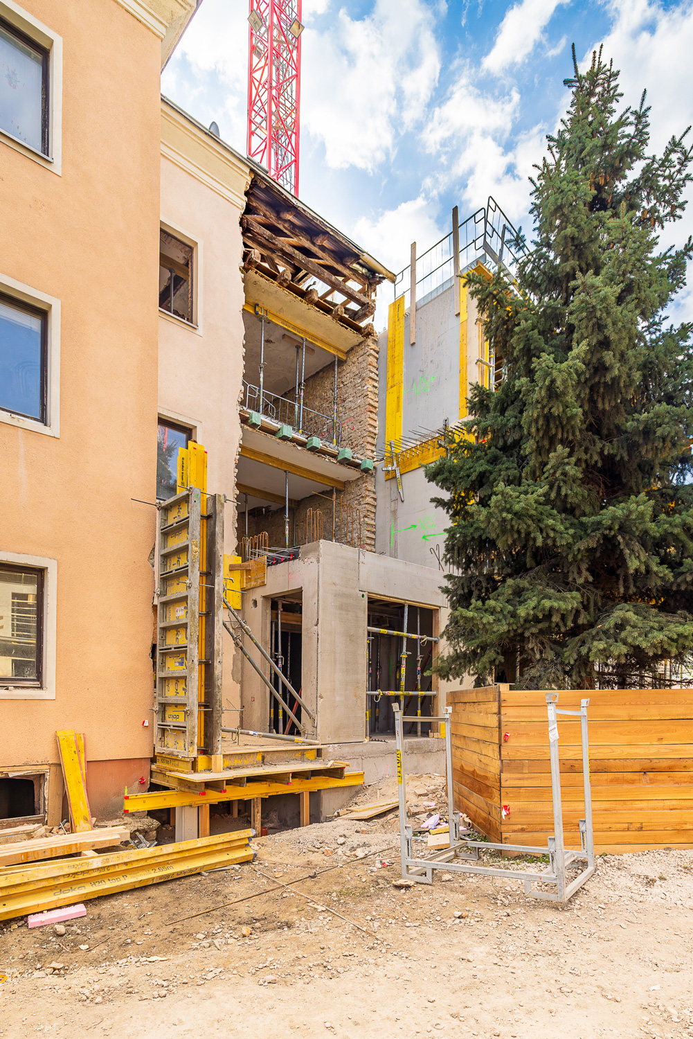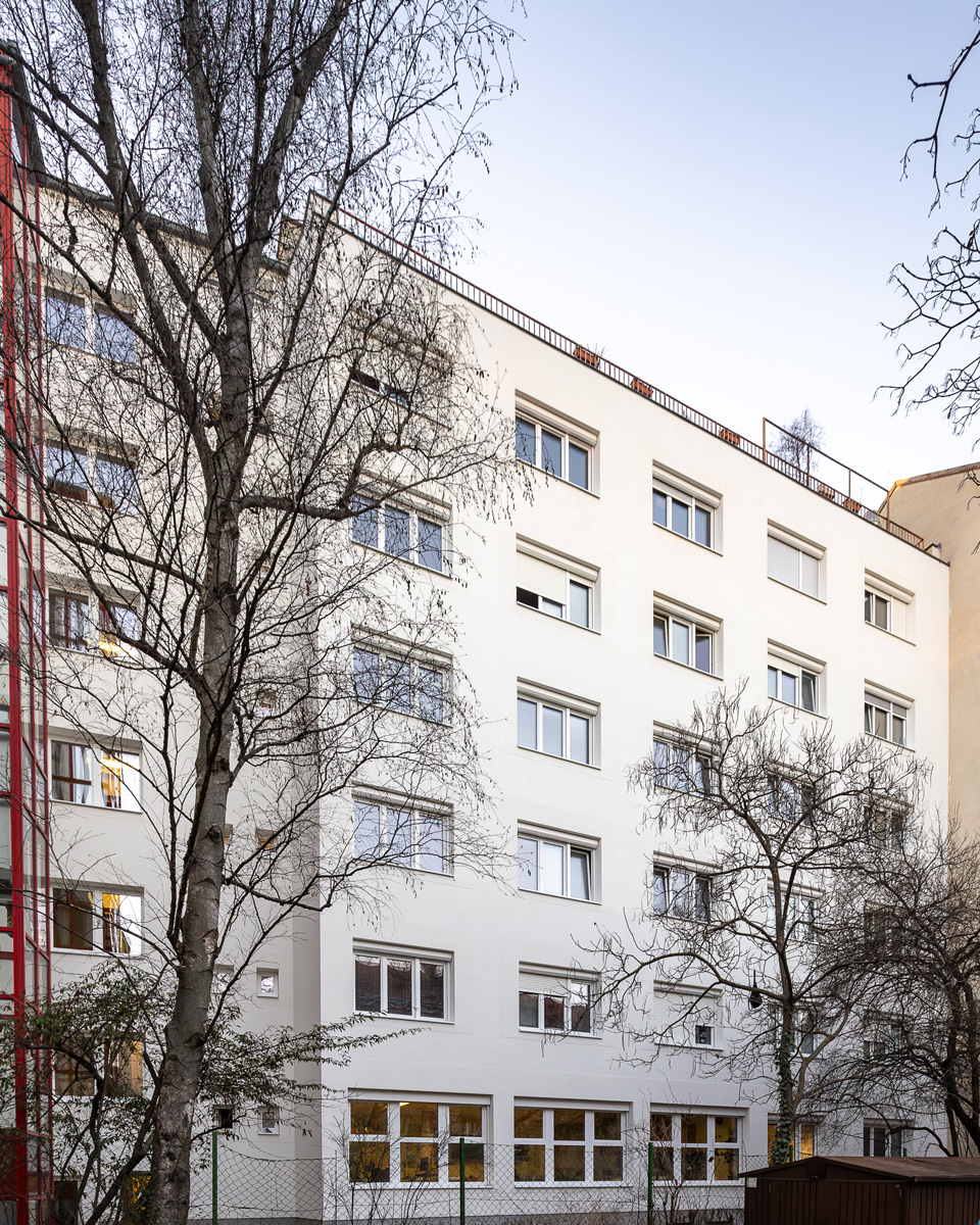 Die vier Bauten stammen aus dem Jahr 1904. Der Großteil des Altbestandes bleibt erhalten und wird durch die Sanierung und eine Aufstockung in den Neubau integriert und behutsam erweitert. So entstehen bis zu sieben oberirdische Geschosse und ein Untergeschoß. Idyllische Dachgärten runden dieses innovative Projekt ab.