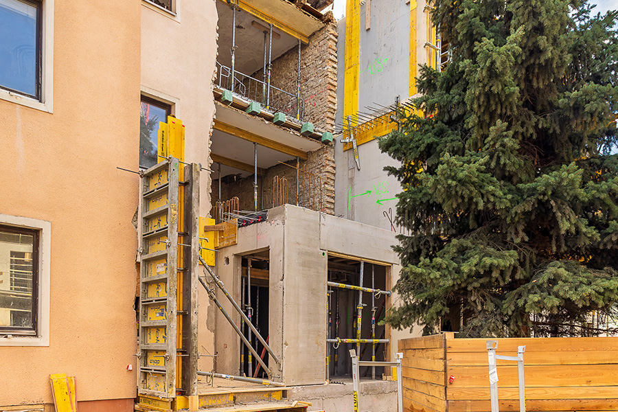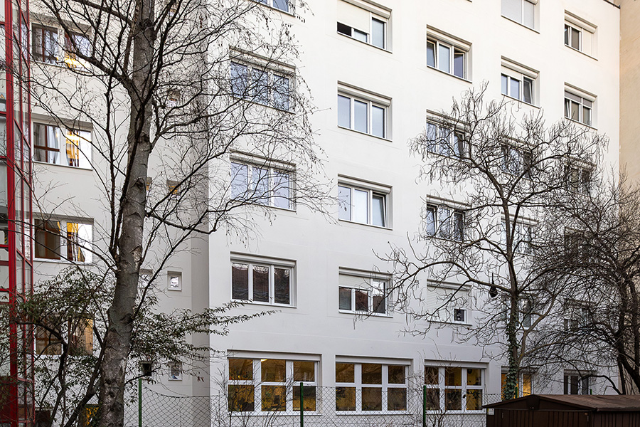Für die EGW wird eine umfassende thermische Sanierung des Wohngebäudes Schallergasse 8-10 umgesetzt. Das Gebäude gliedert sich in eine Tiefgarage, ein Erdgeschoss sowie sieben Obergeschosse und umfasst insgesamt 29 Wohnungen, die während der gesamten Bauphase durchgehend bewohnt bleiben.