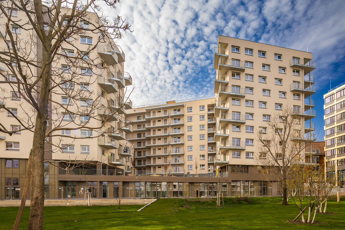 Auf dem Gelände entstehen 144 Mietwohnungen, 6 Geschäftslokale und eine Tiefgarage mit 64 Stellplätzen, aufgeteilt auf 2 Bauteile. Sämtliche Wohnungen sind mit Balkonen, Loggien oder Terrassen ausgestattet.