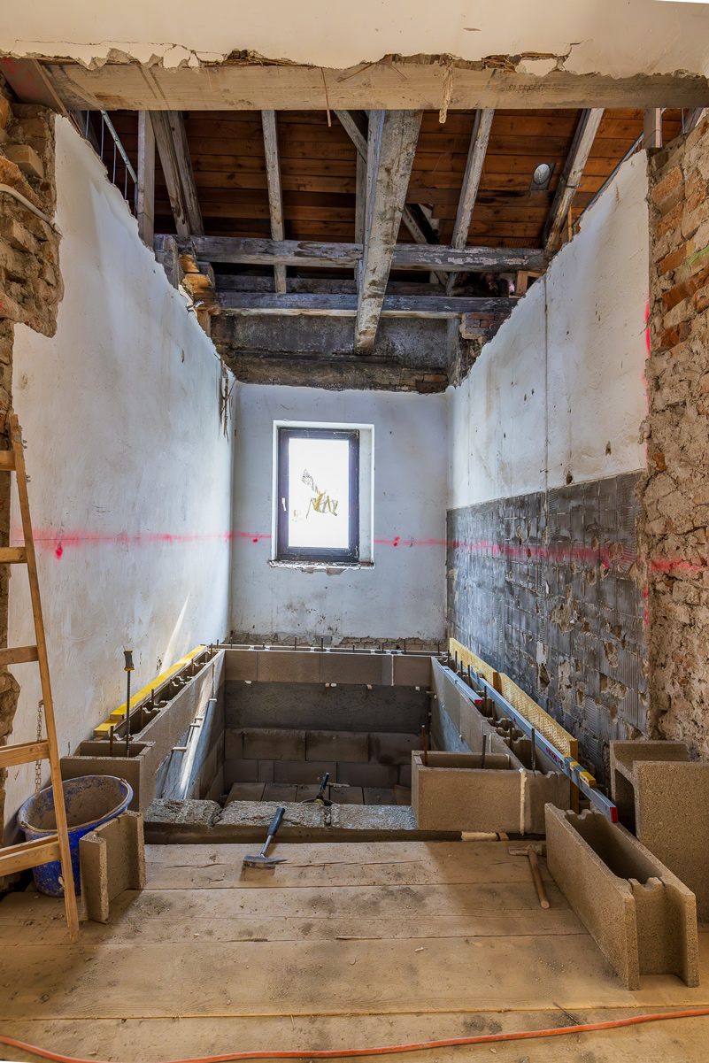 Im Zuge der Sanierung werden die Wurfsteinmauerwerke in den alten Kellern erhalten. Die Zubauten erfolgen in Holzhybridbauweise.