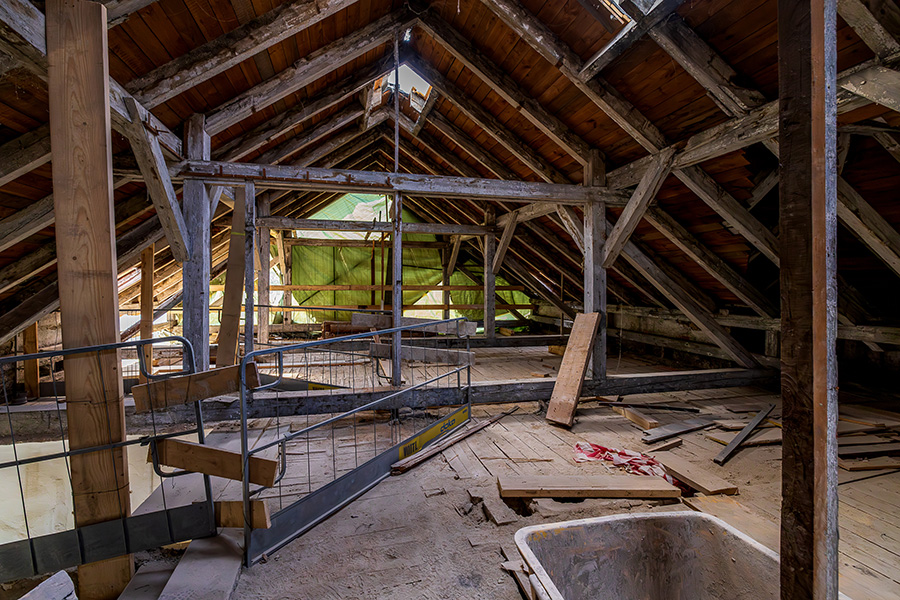 Die Sanierung umfasst das Ersetzen der vorhandenen Fenster und Fenstertüren, das Herstellen von Innenjalousien und die Erneuerung der Blitzschutzanlage.