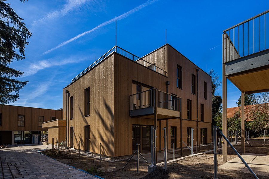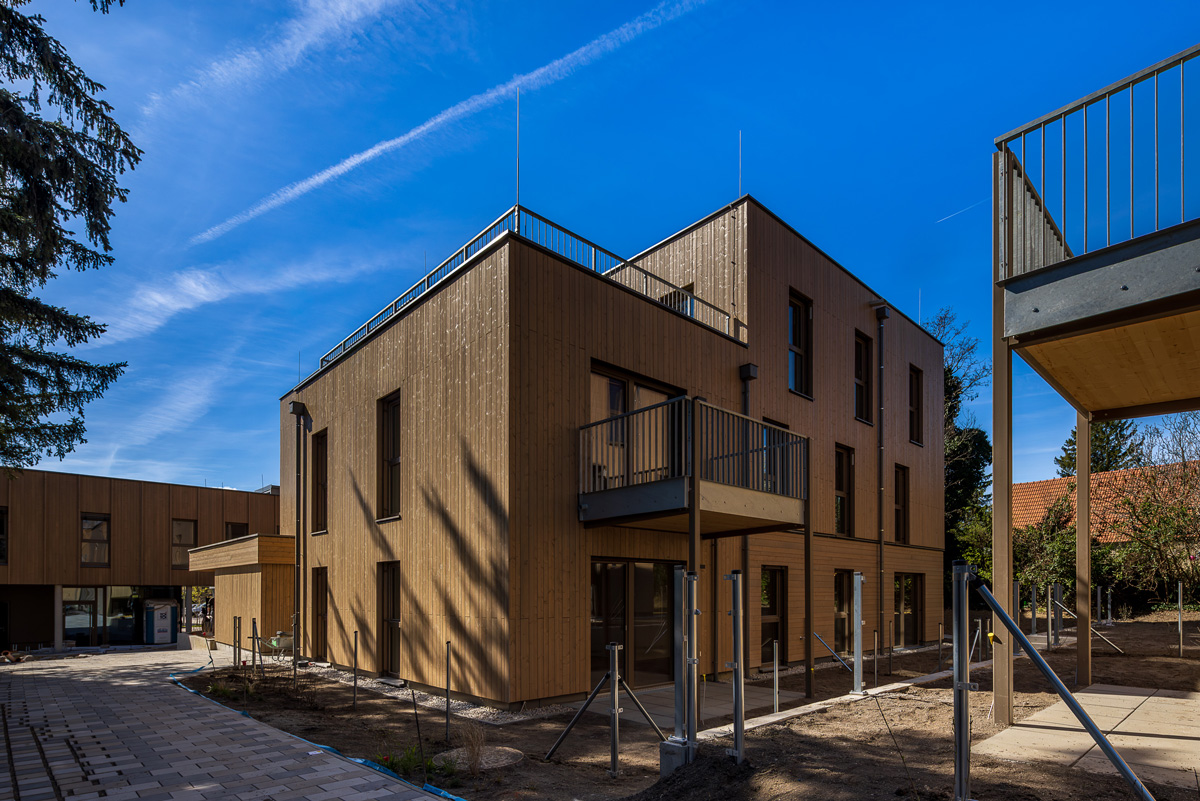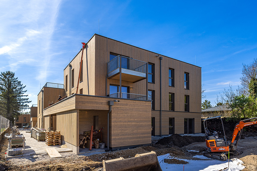 Die Wohnungen verteilen sich auf drei Blöcke, die mit hochwertiger Holzbauweise überzeugen und nachhaltigen Wohnkomfort bieten. Der Gewerbeteil beinhaltet zudem eine Bank und eine Apotheke, die eine ideale Nahversorgung für alle zukünftigen Bewohner und die Umgebung gewährleisten. Die Dächer werden größtenteils mit einer Intensivbegrünung gestaltet, die zur Zwischenspeicherung von Niederschlagswasser beiträgt und gleichzeitig einen ökologischen Mehrwert bietet. Zusätzlich werden die Dachflächen für die solare Energiegewinnung mit Photovoltaik-Anlagen ausgestattet, um den CO2-Abdruck des Projekts nachdrücklich zu reduzieren. Alle Räume verfügen über eine moderne Fußbodenheizung, die für ein angenehmes Wohnklima sorgt.