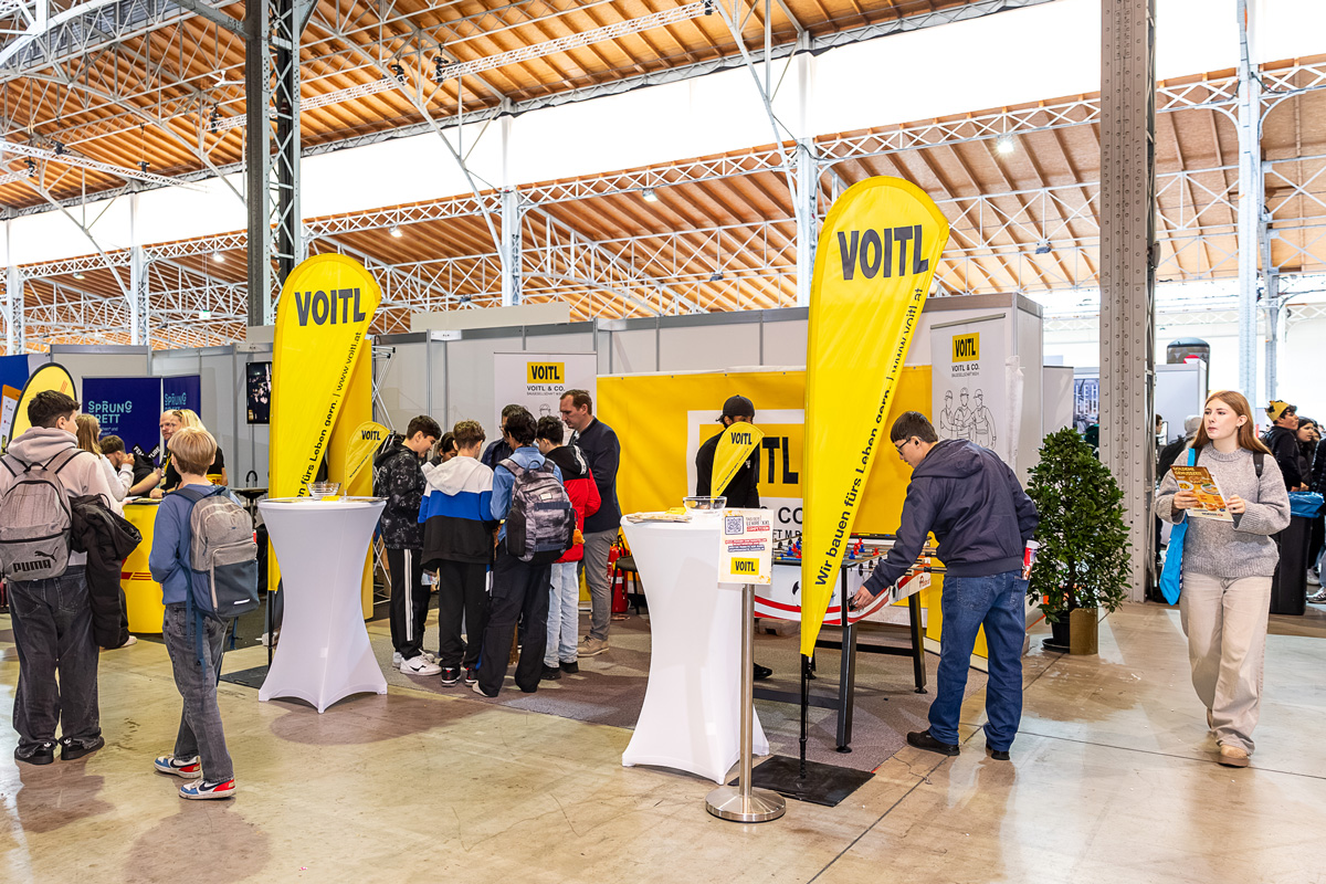 Mehr als 11.000 Besucherinnen und Besucher informierten sich in der Marx Halle Wien über Jobs mit Zukunft. Die Berufsorientierungsmesse mit mehr als 60 Ausstellern bot Jugendlichen die Möglichkeit, verschiedenste Berufe und Ausbildungsmöglichkeiten kennenzulernen - darunter auch das Lehrlingsangebot von Voitl & Co.